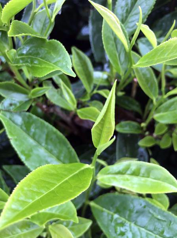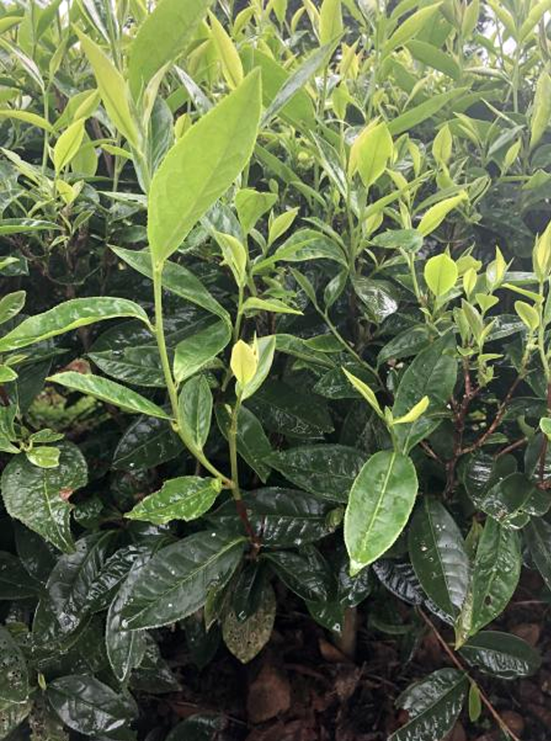 【性狀特征】茶樹無性系品種之一,葉長橢圓形,葉色黃綠,有光澤,葉面較平,葉尖漸尖,葉質(zhì)較柔軟,芽葉黃綠色。灌木型,中葉類,樹姿半開展,葉長9.2cm,葉寬3.3cm,葉面平整葉色黃綠,分枝密度適中,葉著生上斜。3月中旬萌芽,4月中旬開采。花冠長寬為3×31mm。花瓣6-8片,花萼無毛,抗逆性強。